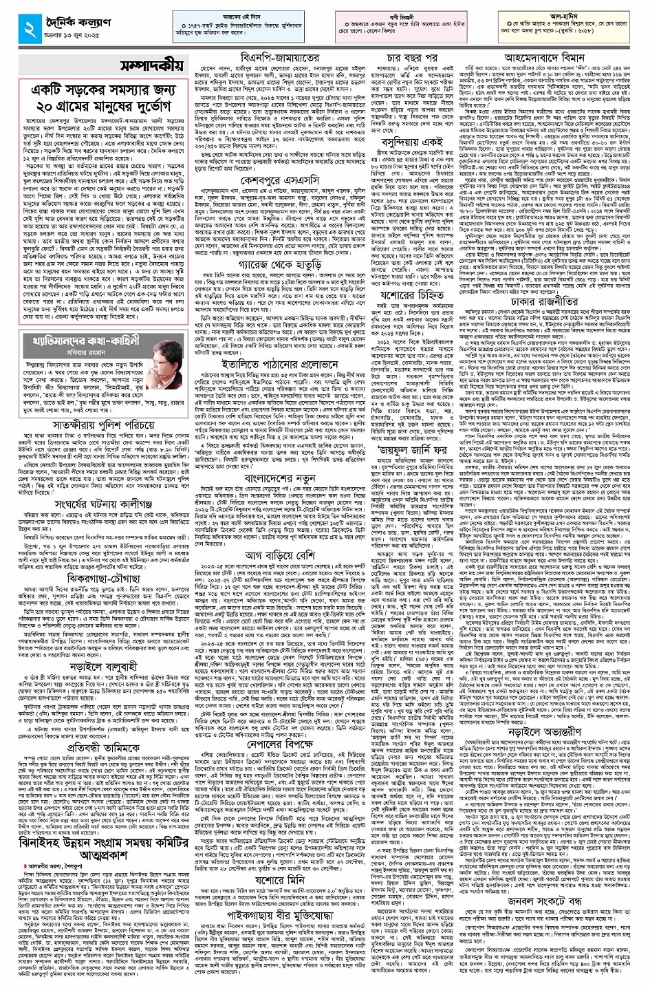 dainikkalyan Page: 2 June 13, 2025 << First << 2 >> Last >> Page 1Page 2Page 3Page 4 × dainikkalyan << First << 2 >> Last >> পাতা-১পাতা-২পাতা-৩পাতা-৪