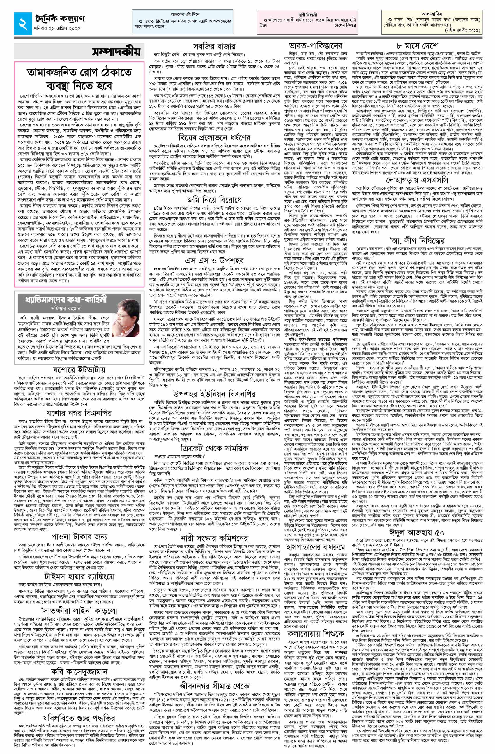 dainikkalyan Page: 2 April 26, 2025 << First << 2 >> Last >> Page 1Page 2Page 3Page 4 × dainikkalyan << First << 2 >> Last >> পাতা-১পাতা-২পাতা-৩পাতা-৪