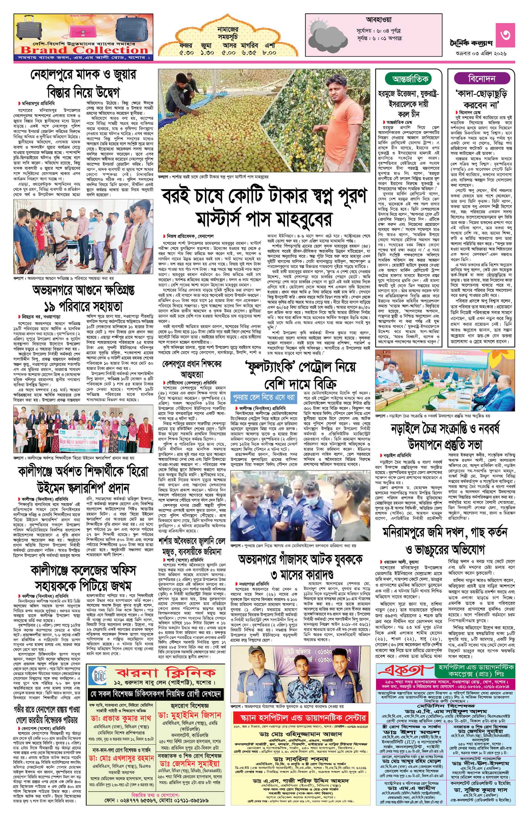 dainikkalyan Page: 3 April 03, 2026 << First << 3 >> Last >> Page 1Page 2Page 3Page 4 × dainikkalyan << First << 3 >> Last >> পাতা-১পাতা-২পাতা-৩পাতা-৪